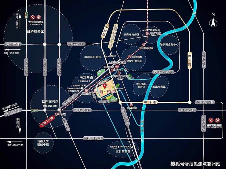 枢纽:虹桥高铁机场、上海南站、浦东机场
