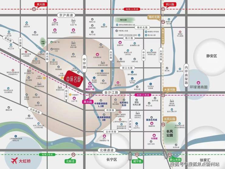 地处普陀区金沙江路与真北路段,中环线交界处,属于长风商务版块核心区域,与虹桥商务区隔河相望,近大虹桥经济商务圈和长风高端居住区,作为大虹桥内靠近市中心的板块,本案属于虹桥经济体,于市中心区域内,区域规划优势强,是市中心一块整体规划的高端商务区。