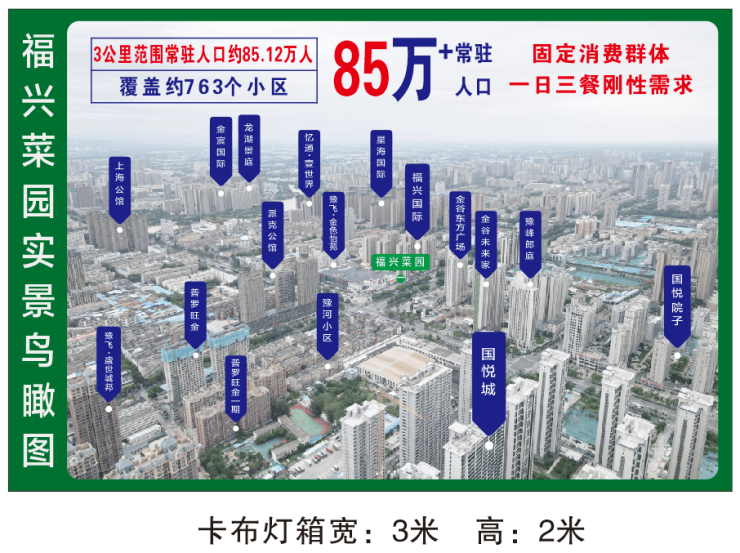 项目三公里范围小区763个,常驻人口规模约85万人,居住密集度超高,值得一提的是项目周边数十家单位家属院,都是我们的客户群体!项目自带福兴国际成熟小区,入住率达99%,租房一房难求!项目对面都是超级大盘,有四季城,国悦城,金谷东方广场等超万人大型社区,这些人的消费观念更加的注重购物环境和消费体验感,人流大相对应的一站式教育资源遍布周边!