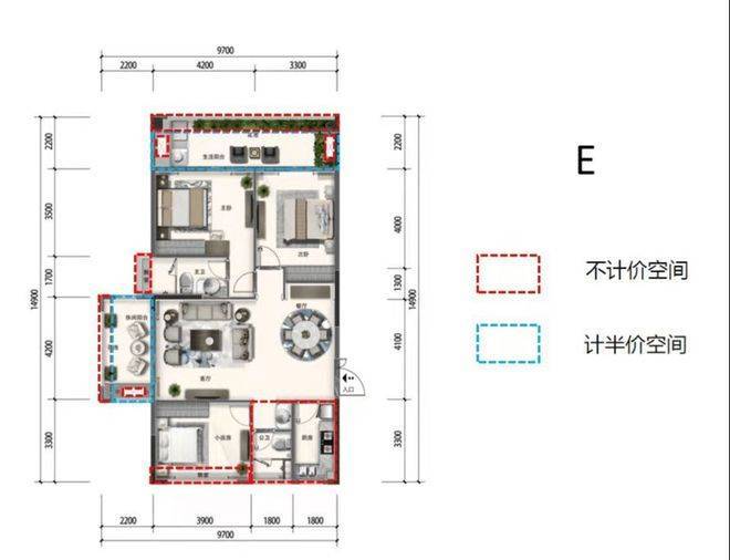 E户型 3房2厅2卫1厨 建面约110-122㎡
