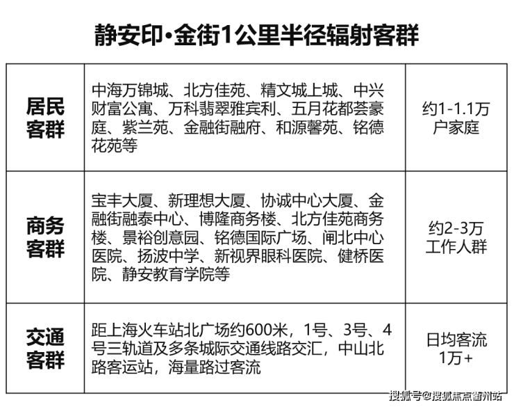 静安印·金街定位为时尚、活力、精致的高端商业街,1公里半径内,可辐射三路庞大的消费群体,形成天然的旺场效应,且面向客群均拥有强大消费力和消费频次。