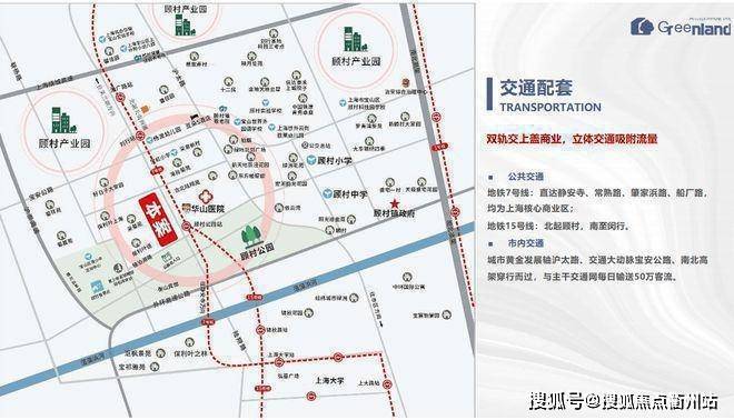 双地铁7号15号线地铁上盖,东面三级甲等华山医院北院,南面郊野公园顾村公园,每年吸引的全国各地游客,西面是保利叶语高档住宅和别墅区,东面大型成熟的居住社区,本案周边常住人口预计20万人,随着城市板块消费的不断融合,产业产能的不断升级,将为本案带来源源不断的消费人群。
