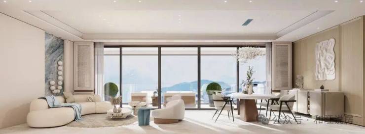 约9-12.5米超阔巨幕阳台系统,与宽厅及全景落地窗,共同构建出融合观景、社交与休憩的复合场域。