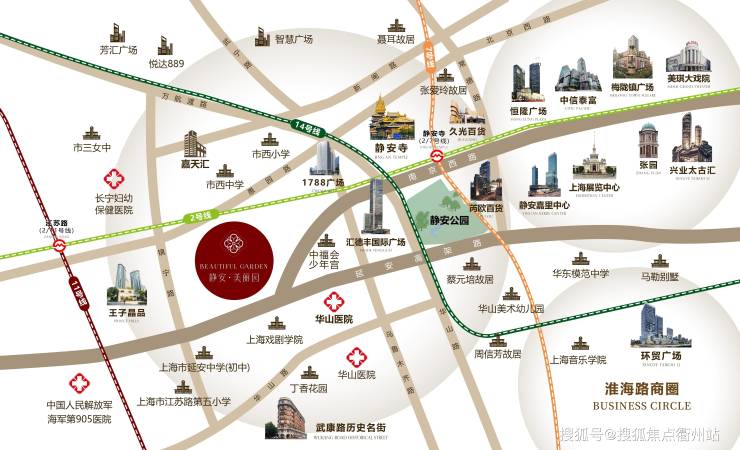 位处于长宁区、徐汇区、静安区三区交汇处,隶属于静安区黄金城市主干道上