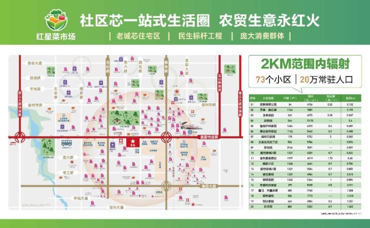 项目2公里核心辐射范围内,拥有108个大型社区,覆盖约25万常住人口,这构成了市场稳定和高频的消费基本盘