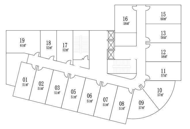 公寓面积段:51-61平 (主力户型51平朝南)