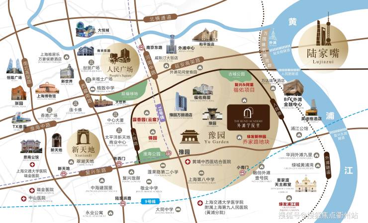 国际商业:奢华底色下楼即享豫园星辰自建商业,项目北侧上海外滩BFC金融中心,对面福佑地块,规划建成集高端商业,文化体验与科技创新于一体的综合性地标,约1KM范围内豫园、城隍庙、外滩、万国建筑群等世界地标及商城,约2KM范围内北外滩来福士、淮海路、新天地国金IFC、陆家嘴中心南京路步行街等顶流商圈