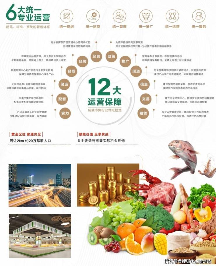 业态分布:猪肉、牛羊肉;熟食、美食加工;水果、蔬菜;光禽蛋类、水产、海鲜;豆制品;特产;粮油米面;杂货等