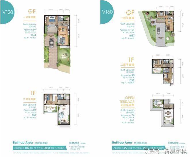 注:以上面积除滨海空中平墅外均为马来西亚建筑面积计算方法,含室内面积、生活阳台、车位、开放式平台等。