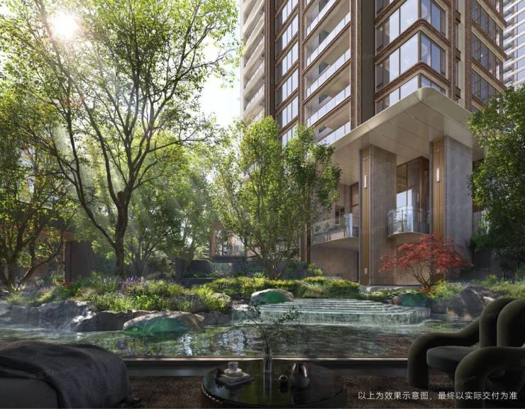 产品设计:建筑设计上,外立面采用金属釉工艺与竖向线条结合,搭配大面积玻璃幕墙,彰显现代顶豪气质。社区整体抬高约 1.3-1.4 米,融入河道景观,形成 “玉盘托珠” 格局,营造悠谷式归家谧境。园林首创近 7 米垂直高差的 “立体峡谷景观”,结合 5-8.3 米全架空层,形成 14 米高差的全龄剧场。