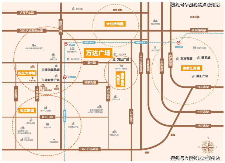 生活:松江区中山幼儿园、万达广场、松江大学城