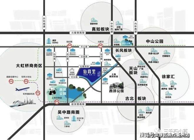 项目隶属长宁区西郊板块,毗邻 中山公园、古北、虹桥商务区。区域生活配套醇熟,地理优势明显。