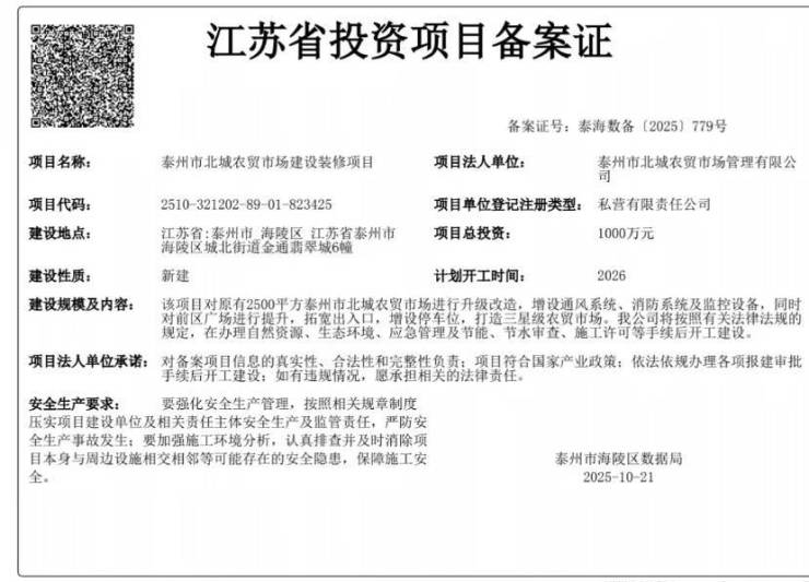 1、泰州老城区中心位置,民生菜篮子工程。