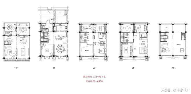双拼户型平面布局(建筑面积180㎡,使用面积432㎡)