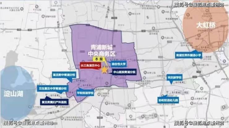 配套:配有5A办公、主题商业、质感华宅,5大业态齐集。其中办公部分将以“西虹桥·总部中心+创智商务领地”为理念,形成集五星级酒店、甲级办公楼、智能化生态系统于一体的180米高的青浦新地标。此外,该综合体的一部分将成为创意、创业园区,为中小型企业及需要平台扶持的小微企业,提供科技智能化办公环境。该项目将成为区域内的超大型地标性建筑。