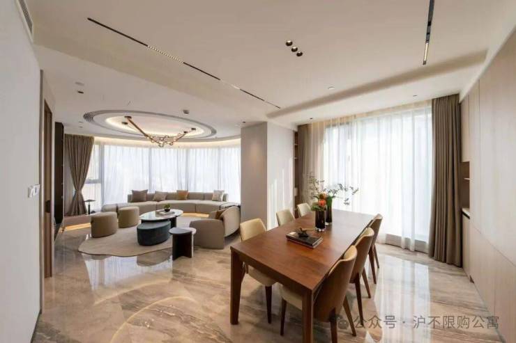 建筑立面为现代简约风格,干挂石材雕刻建筑经典,结合大曲率流线侧窗,从内部大堂到走廊公区,考究的用材与色彩搭配尽显海派摩登气质与豪宅质感奢华!