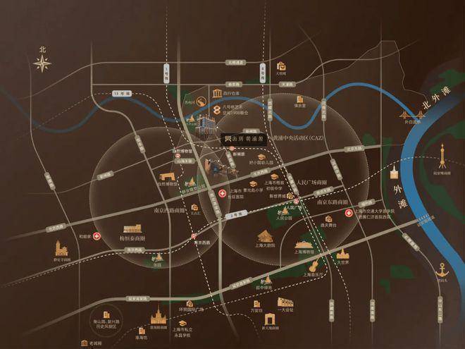 项目位于人民广场板块核心,紧邻苏州河首排景观,属于中央活动区(CAZ)核芯地段。步行可达上海博物馆、大剧院等文化地标,周边 “恒梅泰” 商圈、南京东路步行街等顶级商业资源环伺。其地理位置被称为 “上海地理原点”,既是历史源点,也是现代都市的心脏。