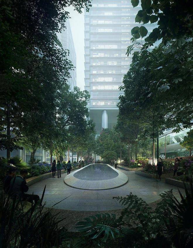 设计特别关注商业与住宅塔楼的交接面,通过景观缓冲区将公共领域和住宅的私属空间分隔开来,以求最大限度地保护居民的隐私,营造安静的居住环境,并削弱后勤和屋顶设备的视觉影响。