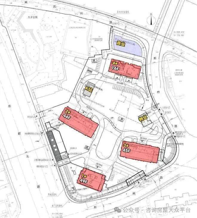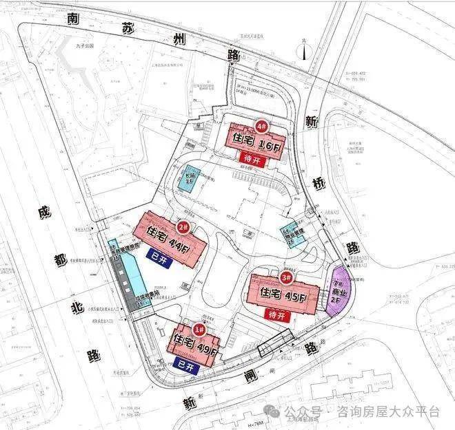 1#地块:分为南北两块:南块,东至新桥路,南至新闸路,西至成都北路,北至成都北路1012弄;北块,东至新桥路,南至新桥路51弄,西至九子公园,北至南苏州路。未来主力产品为超高层住宅。