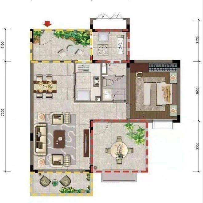 J1户型 建筑面积约:72㎡ 2室2厅1卫