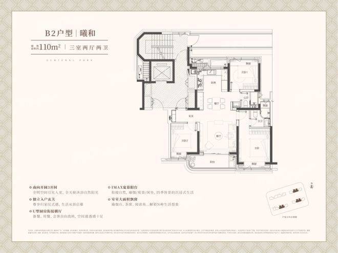 户型优势:住宅产品以 110-139㎡的户型为主,全系精装交付,3000 元 /㎡的装标选用科勒、方太等一线品牌。110㎡三房户型独立玄关入户,3 开间朝南;139㎡四房户型四开间朝南,南向面宽达 13.8 米,餐客厨一体化设计搭配 7.2 米跑道式阳台,主卧套房配备步入式衣帽间与独立卫浴,270° 全景飘窗可俯瞰社区园林与城市天际线。