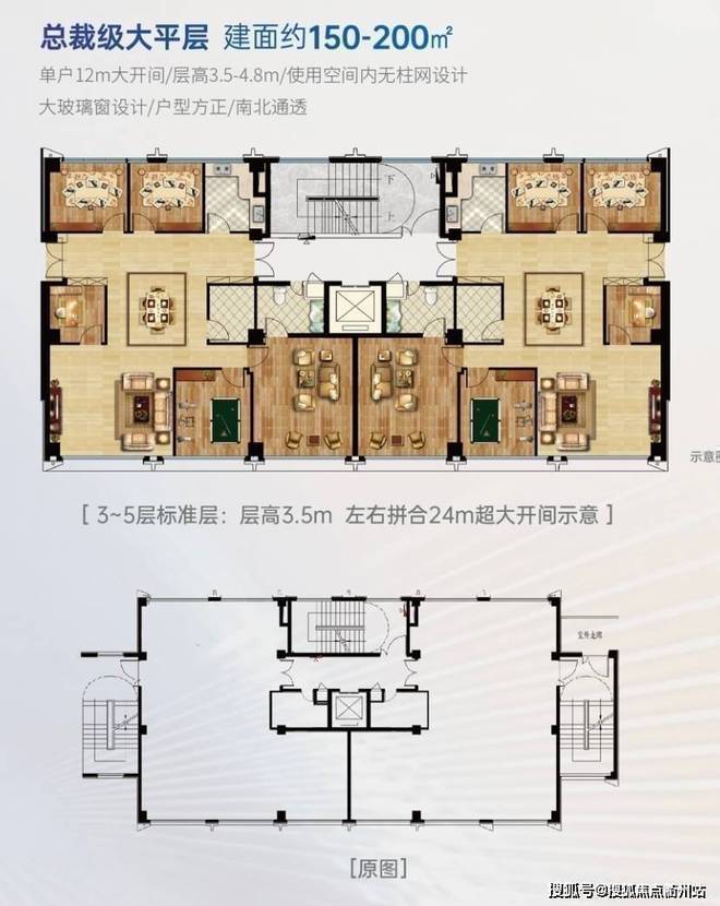 约150-200㎡总裁大平层 (共六层,层高3.5,一楼层高4.8米)