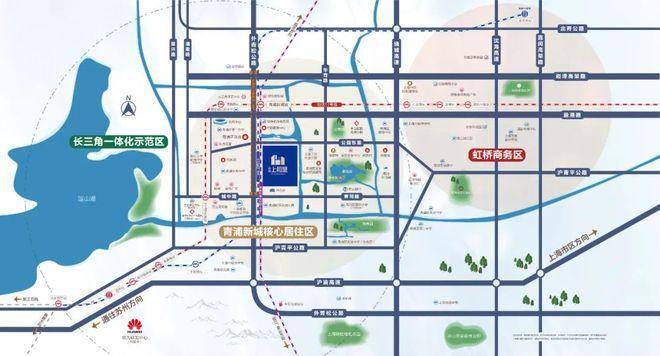 1、17号 线青浦新城站约900米,直达虹桥交通枢纽,无缝换乘2号线、10号线、13号线(建设中)