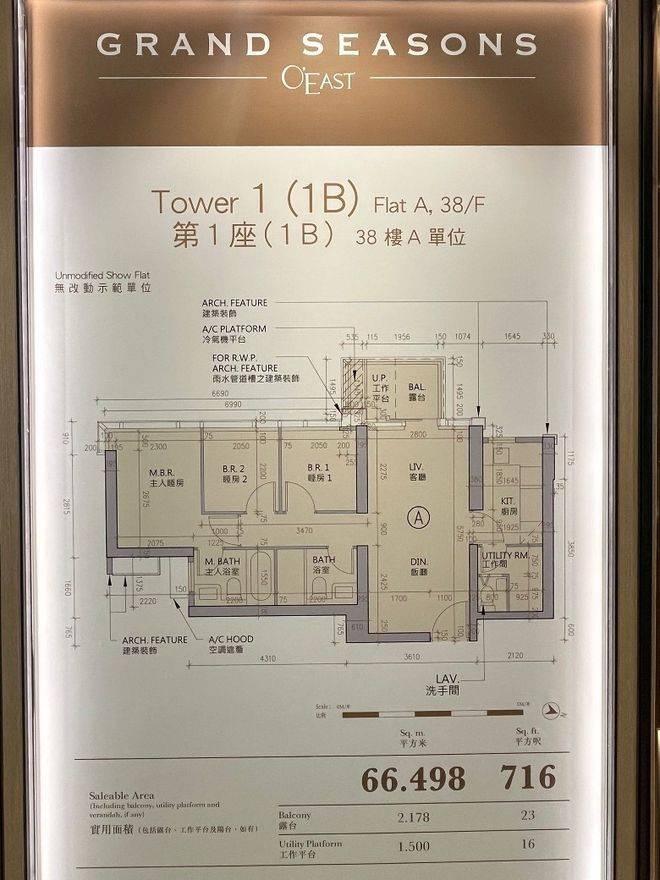 GRAND SEASONS 三房无改动示范单位参照第1B座38楼A室为蓝本而建,实用面积716方呎。