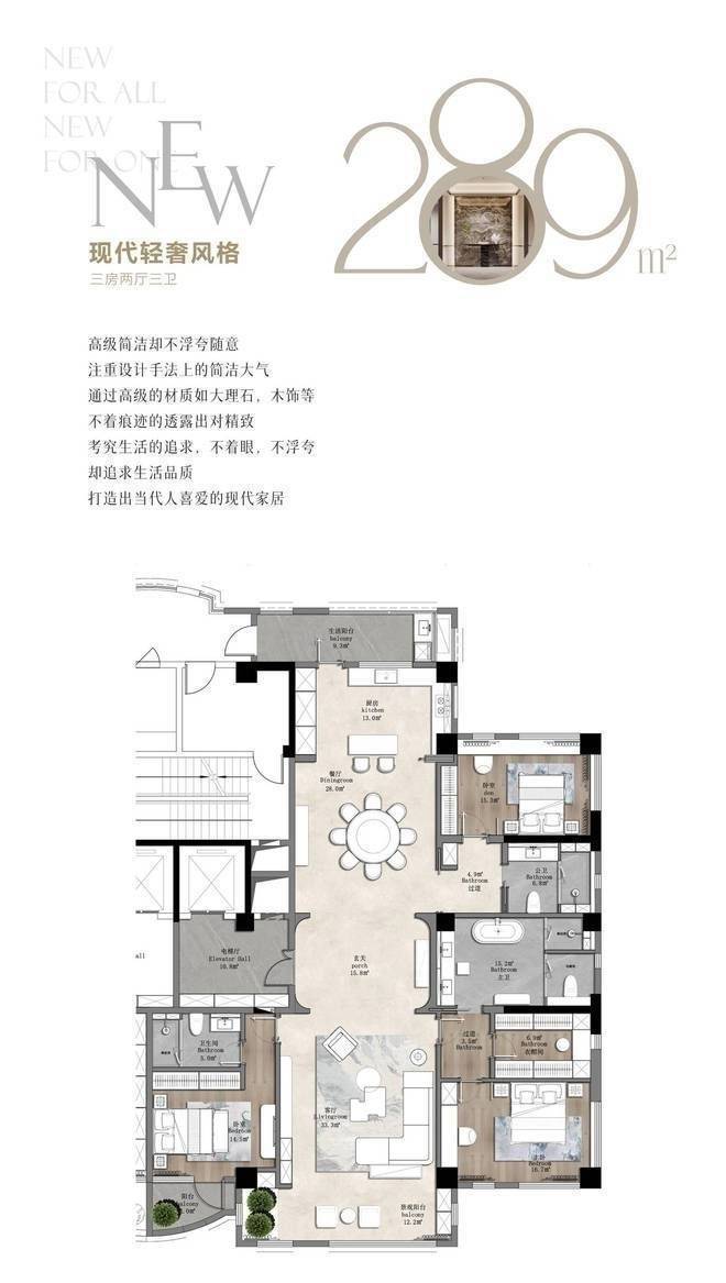 建面约289㎡通燃气豪华大平层 一梯一户