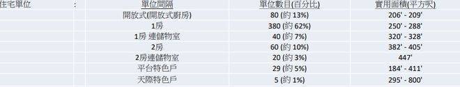 单位间隔:开放式、1房、1房连储物室、2房、2房连储物室、特色户