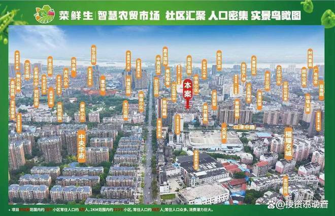 项目周边约20个小区常住人口约4万人,范围有 223个成熟小区,87929户,常驻人口达 48 万人口,不光有固定的住宅消费人群,还有1850多家的饭店餐厅,这部分的餐饮店,对农贸市场的需求是具大的。另外我们项目周边学校、医院和企业众多,他们食堂的采购也是非常巨大的一个数字量。