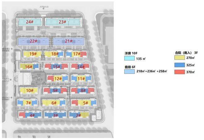 #17栋3层联排(约69套,建面约270㎡、325㎡、370㎡,预计最大庭院超300㎡)