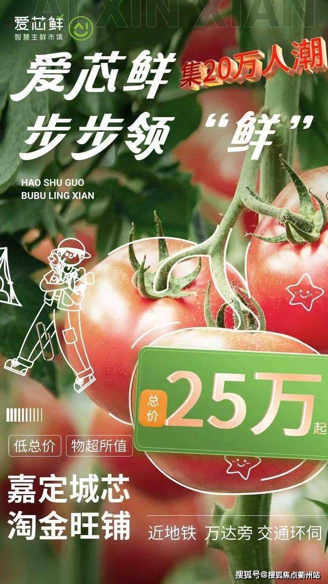 "清晨带着露珠的蔬果、活蹦乱跳的鲜鱼,爱芯鲜智慧市集用25万起的亲民价格,让您触摸城市最鲜活的人间烟火。这里不仅是食材宝库,更是邻里温情的社交场,40年产权+拆迁赔付保障,地铁即达。