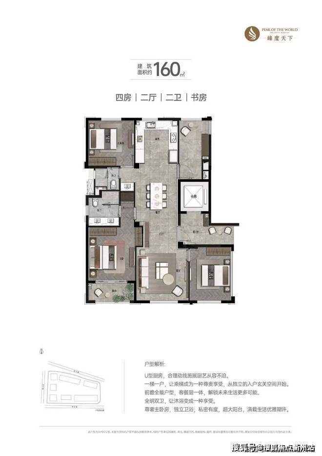 峰度天下公寓产权50年,总高11层,单层层高3.3米,1梯1户的设计,在售面积段为160-172-230平,精装交付,燃气入户。