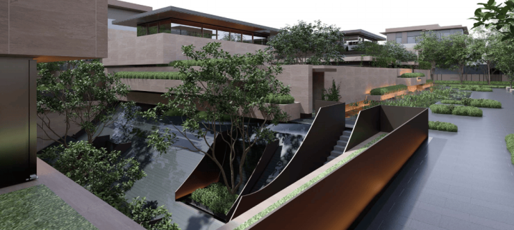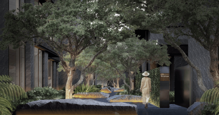 同源全球隐奢居住理念,“以安静取代喧哗、以自然取代浮华”,将避世居所、隐奢度假、艺术精神追求融合,营造拙朴沉稳、自然艺术的生活景致。三段式归家礼迎,格调森林院落景观,规制林荫雕塑花园、自然艺术花园、中心花园庭院,自然与空间交融,细绘移步风景、自然之美,赋予如云隐匿的悠然居所。