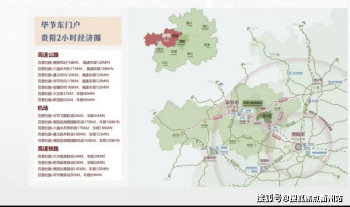 交通便利: 航空直达 毕节【飞雄机场】 贵阳【龙洞堡机场】 遵义【茅台机场】 高铁便利 川渝-2小时生活圈大方高铁站-约25分钟车程 高速通达 项目离高速口5分钟车程