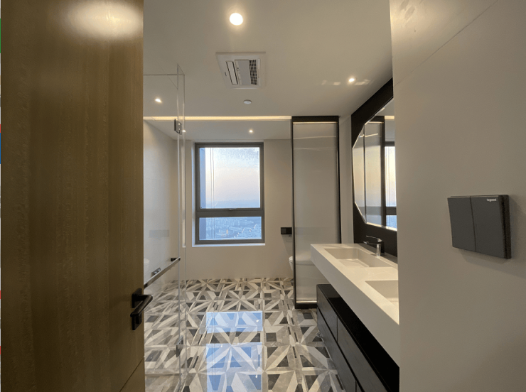 首层大堂约9米的超高挑空,设立了礼宾台及休息会客区,尊崇感十足.项目由新鸿基启胜物业提供了港式高标准的物业服务,包括管家、客服、24小时云端安防,以及各类定制服务.