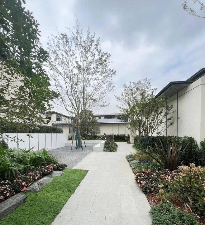 每个组团都有专属的景观植栽,分别是有竹、桂花、松、紫薇、鸡爪槭、樱花、乌桕、石榴等,通过不同的植物带来不同的美好寓意和风水,比如松寓意高雅坚韧,紫薇寓意官运亨通、情深义重,樱花寓意爱与希望,乌桕是院前风水树,寓意好运连连、自然生机、多子多福,石榴吉祥兴旺、多子多福等。整个合院区四时都有不同景致,春可赏叶,夏可观花,秋可见硕果累累,冬天也有长青浓阴,让人感受四时变化,体会季节不同的美。四个组团间是十条曲折的坊道,曲径通幽,也带来更好的围合感与私密性,为您打造私享空间景观。其中,社区内巷道宽约4.8至7.6米,保证了归家的舒适与邻里间的私密距离。