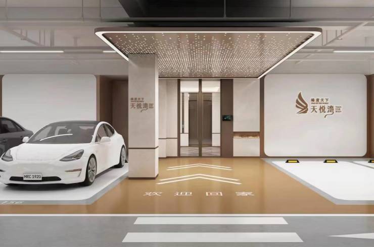 B1楼车库入户门厅——全车库环氧地坪,门厅星空吊顶