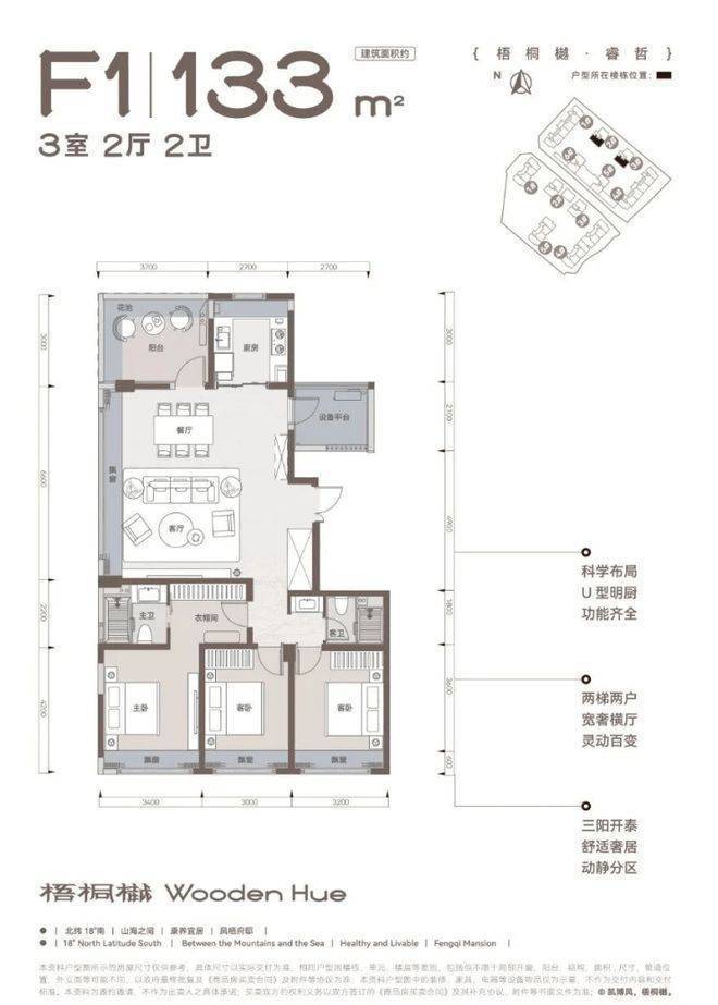 :科学布局,U 型明厨功能齐全。两梯两户设计,保障了业主的居住私密性。宽奢横厅灵动百变,搭配三阳开泰的飘窗设计,让室内采光充足,舒适奢居,动静分区合理,为业主打造一个安静、舒适的居住环境。