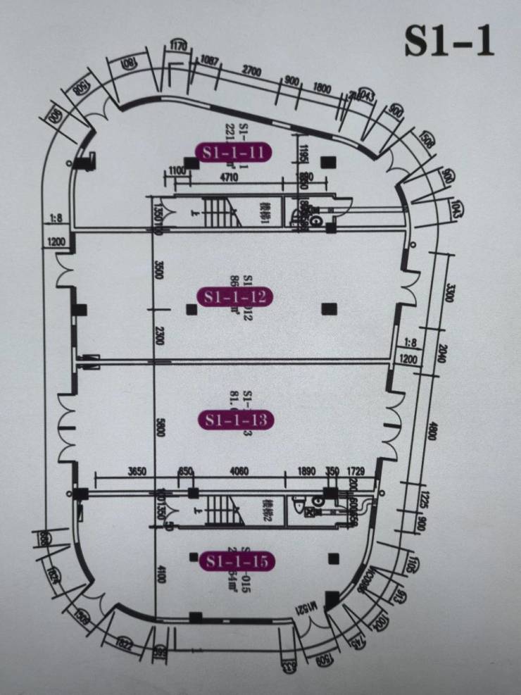 S1栋为纯一层及一拖二户型,面积80-220㎡,总面积606方,可单独或整栋购买,一楼层高5.1m,二楼层高4.5m。得房率95%以上。