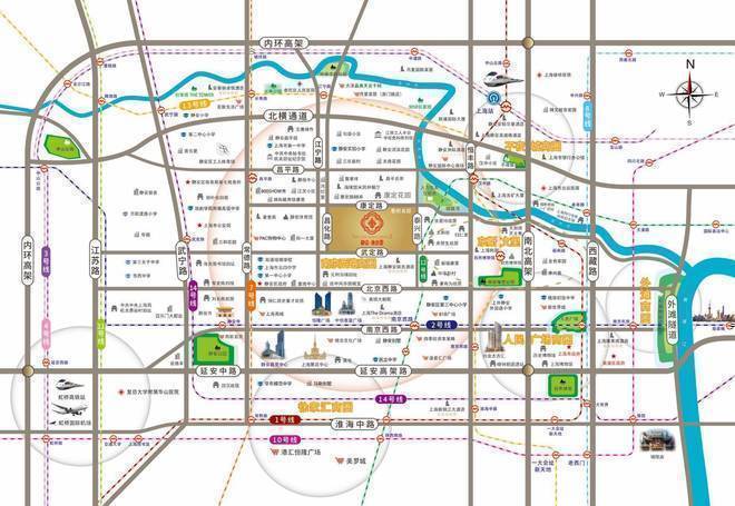 交通网络便捷:康定里交通十分便利,地铁 1 号线、2 号线、13 号线三条地铁线路在此交汇,步行 8 分钟可达 2/12/13 号线南京西路站,6 分钟可达 1 号线汉中路站,25 分钟内可覆盖虹桥枢纽、浦东陆家嘴核心区。此外,项目距离上海站约 1.7 公里,公交站点众多,还有南北高架、延安高架等城市快速路环绕,便于人员往来和商业物流运输。