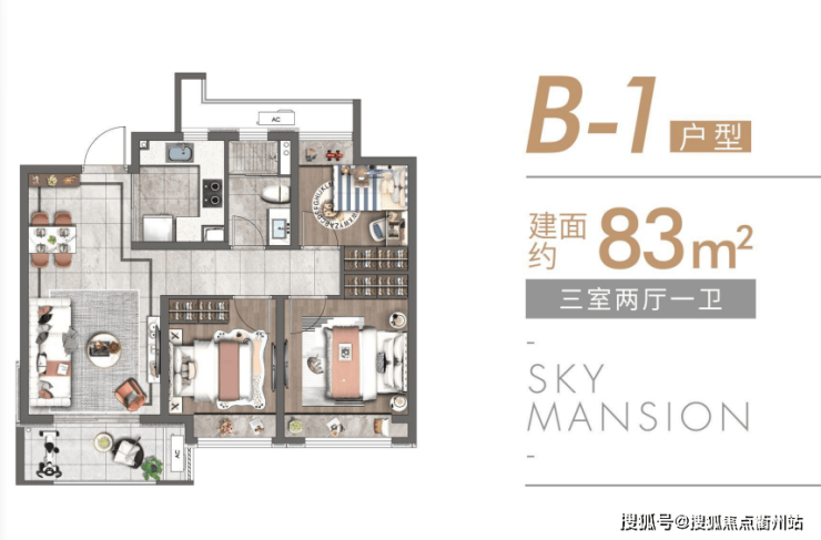 高层 83平3房2厅1卫:总价:300-340万