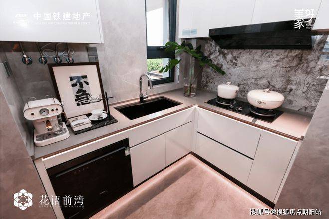 中国铁建花语前湾厨房配有方太三件套(或同等品牌)油烟机+燃气灶+12套嵌入式洗碗机。
